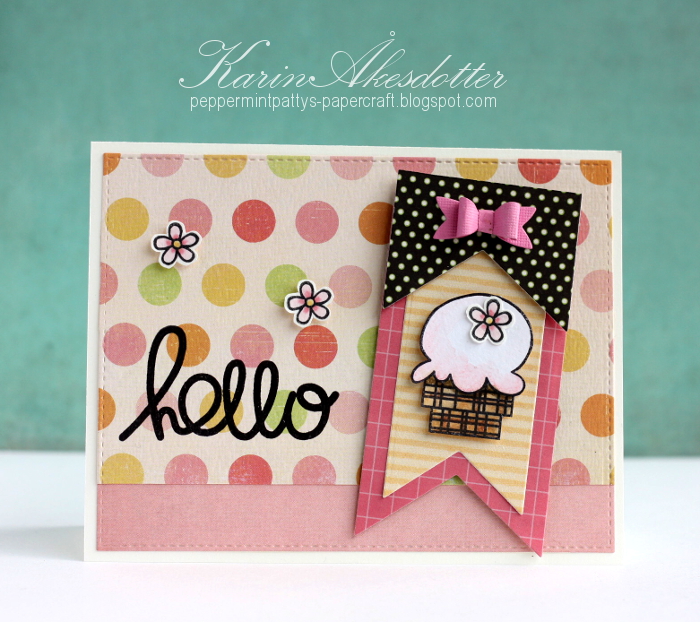 Karin Åkesdotter- PS Spiffy Scooters, Sugar Rush, and Bold Buzzwords stamp sets along with the Baby Bow and Flag Tags dies